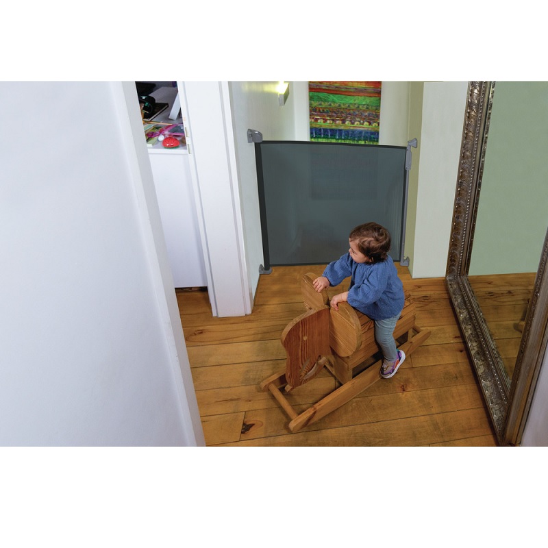 Schnell mal eben den Weg zum Keller oder einen anderen Gang absichern? Oder breitere Durchgänge bis zu 1,40 Meter? Mit dem Tür- und Treppenrollo BEN ist das kein Problem. Einfach bei Bedarf ausrollen und den Durchgang sichern. Dank der Memory-Funktion können Sie direkt beim ersten Montieren die maximale Breite von BEN festlegen, sodass sich das Tür- und Treppenrollo beim nächsten Mal automatisch exakt bis dorthin ausrollt. Wenn Sie BEN nicht mehr benötigen, rollen Sie ihn mit dem automatischen Rückholmechanismus ruckzuck wieder ein. Sie können BEN auch einfach aushaken und das Rollo an einer anderen Stelle platzieren bzw. in einen anderen Raum mitnehmen und dort einhängen. Das zweite Befestigungsset für solche Zwecke liegt kostenlos bei. So können Sie dieses Tür- und Treppenrollo flexibel an mehreren Durchgängen verwenden oder eins bei den Großeltern nutzen. Das Netz reicht in der Höhe bis zu 85 Zentimeter und in der Breite bis zu 140 Zentimeter.