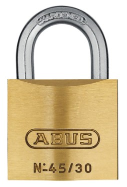 Das ABUS 45 ist ein vielseitiges Messing-Vorhängeschloss mit automatischer Bügelverriegelung, gehärtetem Bügel und einem Zylinder mit Pilzkopfstiften (ab Größe 30 mm). Das parazentrische Schlüsselprofil sorgt für erhöhten Schutz vor Manipulation.