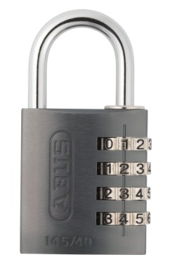 Das ABUS 145 ist Aluminium-Zahlenschloss aus massivem Aluminium mit anodisierter Beschichtung und individuell einstellbarem Zahlencode. Trotz des massiven Stahlbügels ist es besonders leicht.