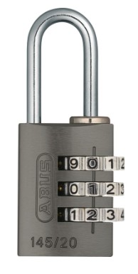 Das ABUS 145 ist Aluminium-Zahlenschloss aus massivem Aluminium mit anodisierter Beschichtung und individuell einstellbarem Zahlencode. Trotz des massiven Stahlbügels ist es besonders leicht.