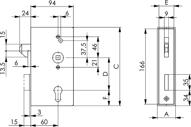 AMF Schiebetor-Schlosskasten 140S-50ZW, blank