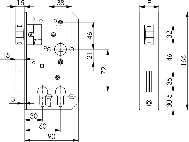 Produktinformationen "AMF Schloss 142DD-30 für Dreikant- und Profilzylinder, verzinkt"