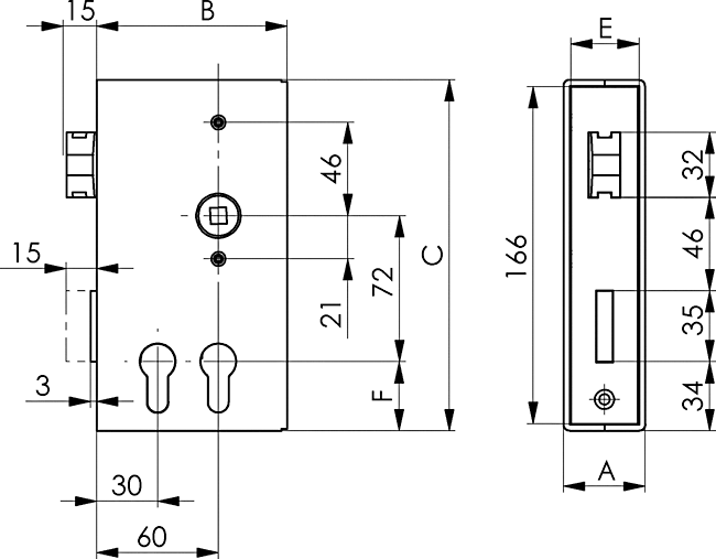 AMF Schlosskasten 140D-30ZW für zwei Profilzylinder, blank