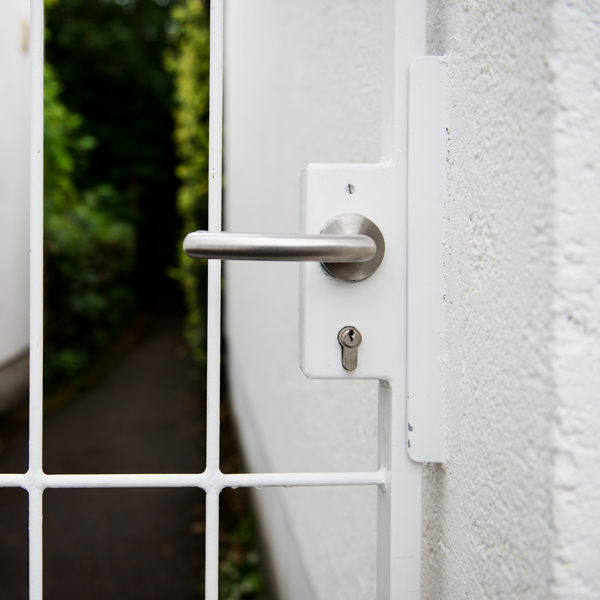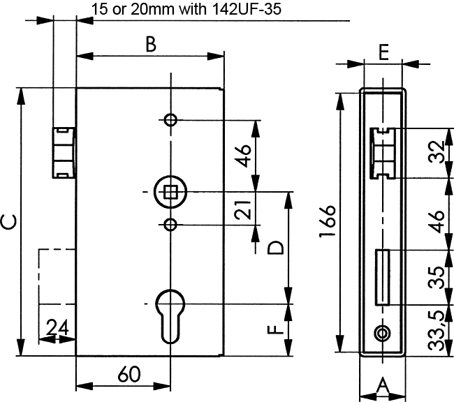 mit verzinktem Schloss Nr. 142U-**. Rechts und links verwendbar durch umdrehbaren Fallenkopf. Wahlweise vorgerichtet für Profilzylinder (PZ), Schweizer Rundzylinder (RZ) oder für Buntbart-Nachrüstsatz. Mit Wechsel.