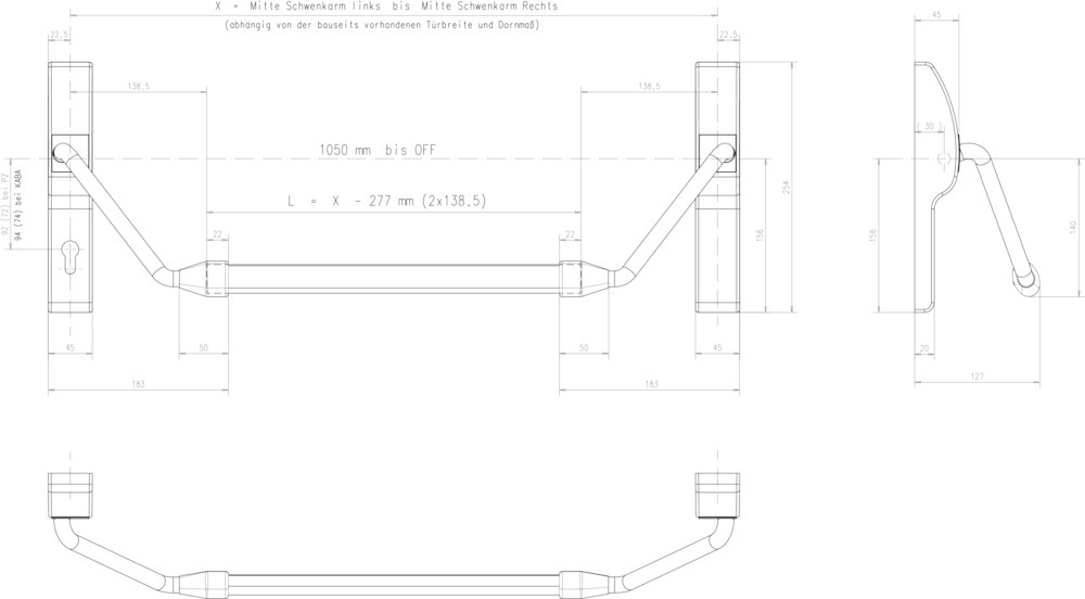 | Anschlagrichtung: | Drücker rechts/links verwendbar |