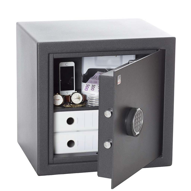 Die Sicherheitsschränke der Baureihe TA S2 von Atlas sind die Allrounder dieses Herstellers. Aufgrund ihrer modernen Leichtbauweise sind sie nahezu überall im privaten- und gewerblichen Bereich zu finden und sind auch als Hoteltresore geeignet. Diese Baureihe verfügt eine doppelwandige Tür, eine umlaufende Feuerfalz und die verwendete feuerhemmende Isoliermasse wirkt feuerabweisend. In dieser Baureihe stehen 6 unterschiedliche Größen zur Auswahl. Jede kann entweder mit einem Doppelbart-Sicherheitsschloss oder mit elektronischem Tastenschloss bestellt werden. Zur Verankerung ist sie vorgerüstet mit jeweils zwei Befestigungspunkten in Boden und Rückwand.