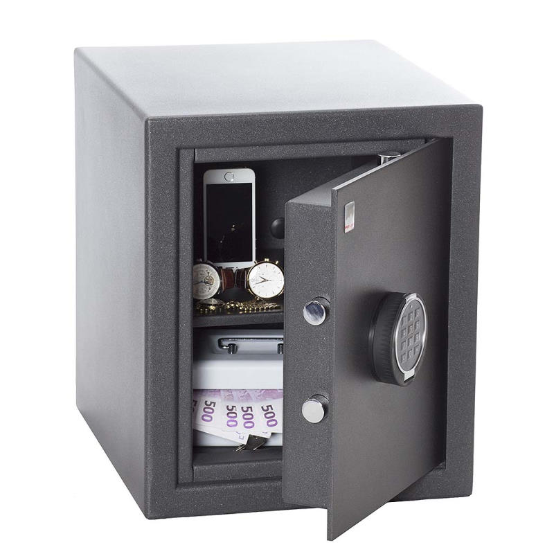 - Doppelbart-Sicherheitsschloss nach EN 1300 oder elektronisches Tastenschloss