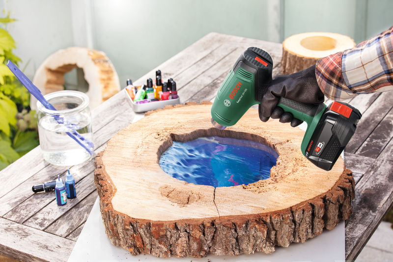 Akku-Heißluftgebläse EasyHeat 18V-500. Tragbares Heißluftgebläse für schnelle und einfache Heißluftanwendung. Akku-Heißluftgebläse für Heimwerker zum schnellen Erledigen von Arbeiten, auch unterwegs: ideal zum Schrumpfen von Kabeln, Entfernen von Etiketten und anderen einfachen Aufgaben. Überlegene Heizelement-Technologie: gleichmäßige Wärmeverteilung für eine schnelle und präzise Heißluftanwendung. Constant Power: Sorgt für ein gleichbleibendes Temperaturniveau über die gesamte Akkulaufzeit. Boost-Modus: für Aufgaben, die hohen Temperaturen erfordern, wie Entfernen von Farbe oder Anzünden eines Holzkohlegrills. Gummierte Rückseite: stabile Parkposition dank rutschfester Oberfläche. Kompatibel mit Bosch 18V POWER FOR ALL Akku - für optimale Leistung 4 Ah oder höher verwenden. Kartonschachtel. Reduzierdüse (1 609 201 648)