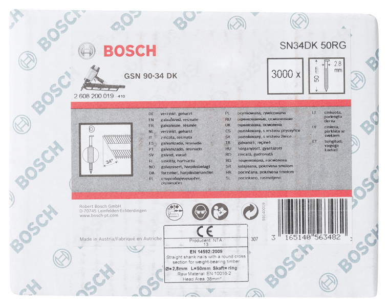 Produktinformationen "Bosch D-Kopf Streifennagel SN34DK 50R, 2,8 mm, 50 mm, blank, gerillt, 3000er-Pack"