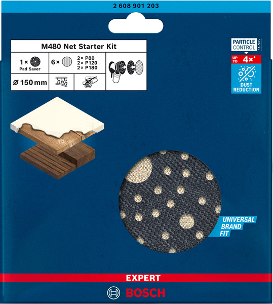 Bosch EXPERT M480 Schleifnetz für Exzenterschleifer, 150 mm, K 400, 50 Stück