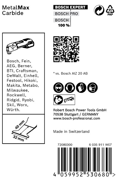 Produktinformationen "Bosch EXPERT MetalMax AIZ 20 AIT Blatt für Multifunktionswerkz., 40 x 20 mm, 5 Stück"