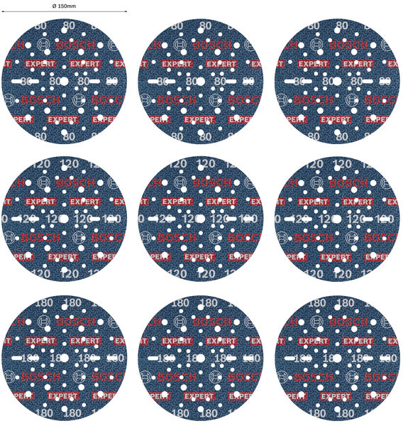 Produktinformationen "Bosch EXPERT O780 Foil Schleiffolien-Set, 150 mm, G80/G120/G180, 9-tlg."
