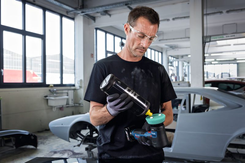 Polierer GPO 12V-77, Der Rotationspolierer GPO 12V-77 bietet dank seines bürstenlosen Motors eine konstante Leistung. Er kombiniert Komfort und Präzision mit dem Gasgebeschalter für Feineinstellungen innerhalb der gewählten Stufe und dem Sanftanlauf, um Spritzer zu vermeiden. Er verfügt über HMI-Funktionen - eine Akku-Ladestandsanzeige und eine 5-stufige Geschwindigkeitsauswahl - mit der du den Polierprozess steuern kannst. Dieses Werkzeug erleichtert das Polieren durch einen Verriegelungsknopf, wodurch der Auslöser während der Arbeit gedrückt bleibt. Mit seinem kompakten, ergonomischen Design eignet er sich ideal zum Polieren kleiner Flächen an schwer zugänglichen Stellen. Der GPO 12V-77 poliert kleine Flecken, entfernt tiefe Kratzer und reinigt stark verwitterte Lacke. Es ist mit allen GBA 12V-Akkus kompatibel. Der GPO 12V-77 verfügt über einen 77-mm-Polierteller mit einem Maulschlüssel für einfachen Schleiftellerwechsel. Karton. Stützteller (77 mm) (2 608 001 119). Polierteller Medium 77 mm (2 608 623 363)