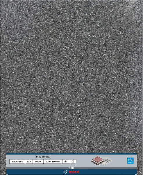 Schleifen harter Oberflächen mit hoher Geschwindigkeit! Silizium-Carbide-Körnung für Geschwindigkeit und Qualität Du bist Maler und auf der Suche nach einem langlebigen Schleifblatt, mit dem du deine Produktivität steigern und deinen Kunden schneller überzeugende Ergebnisse liefern kannst? Dann ist diese PRO C355 die richtige Wahl: Sie schleift schneller als herkömmliche Schleifmittel. Das PRO C355 Schleifblatt wurde mit starken Silizium-Carbide-Körnern versehen, damit du schneller beste Ergebnisse erzielst.