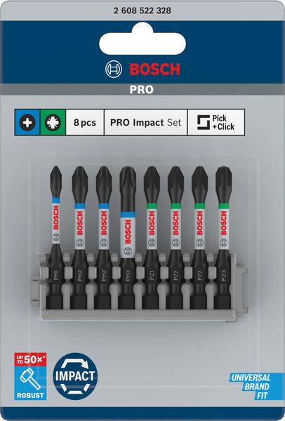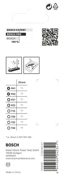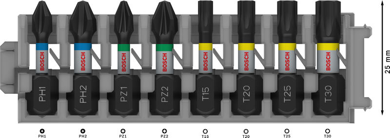 Produktinformationen "Bosch PRO Impact Mixed Pack, PH2(x2); PZ2(x2); H5; T20; T25; T30, 25 mm, 8-tlg."