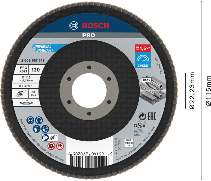 Produktinformationen "Bosch PRO X571 Fächerschleifscheibe, 115 mm, G60"