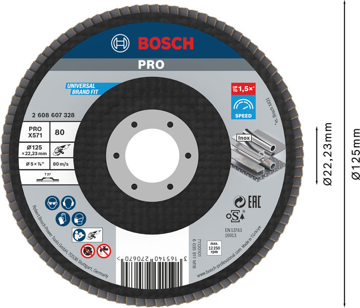 Produktinformationen "Bosch PRO X571 Fächerschleifscheibe, 115 mm, G80"