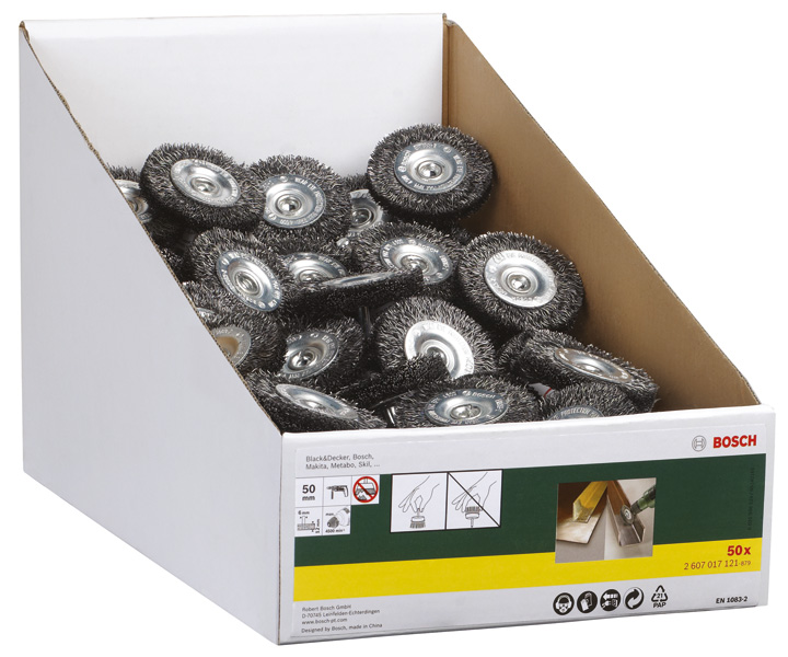 | Inhalt: | 50 Topfbürsten, Ø 50 x 6 mm Inhalt Display: 50 x 2 607 017 124 |