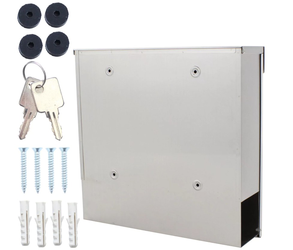 Edel und einzigartig wirkt der Rottner Briefkasten Kensington. Sein, aus gebürstetem Edelstahl geformter, Korpus begeistert mit einer integrierten untenliegenden Postbox. Damit Ihre Sendungen vor Schmutz und Nässe geschützt sind, hat die Klappe eine großzügige Tropfnase, welche auch das Zylinderschloss vor der Witterung schützt. Der Briefkasten wird mit Montagematerial und zwei Schlüsseln für das Zylinderschloss geliefert.
