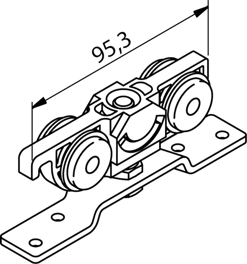 HELM Objekttür Doppelrollenwagen, Ausführung: mit Flansch, doppelpaarig, Modellnummer: 73, Material: Kunststoff, Oberfläche: galvanisch verzinkt, Türwerkstoff: Holz, Türart: Schiebetür, Türflügelanzahl: einflügelig, Befestigungsart: Zum Anschrauben, Lagerung: Kugellager, Flügelgewicht max.: 80