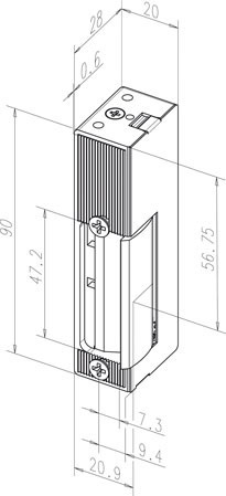 effeff, Türrahmen-Elektro-Türöffner, Modellnummer: 14F, Ausführung: ohne Schließblech, Bauform: asymmetrisch, Ergänzung: stabile Bauform, verstellbar, DIN-Richtung: DIN Links-Rechts, Einbaulage: senkrecht, waagerecht, Entriegelung: ohne, Funktion: Arbeitsstrom, Befestigungsart: zum Einlassen, Material Gehäuse: Zinkdruckguss, Einzelteilmaterial Falle: Stahl, Öffnerbreite: 20 mm, Öffnerhöhe: 90 mm, Öffnertiefe: 28 mm, Spannung min.: 6 V, Spannung max.: 12 V, Spannungsart: AC/DC, Stromanschluss: klemmbar, steckbar, Stromart: AC/DC, Stromaufnahme AC bei 6V: 550 mA, Stromaufnahme AC bei 12V: 1100 mA, Stromaufnahme DC bei 6V: 780 mA, Stromaufnahme DC bei 12V: 1560 mA, Fallenvorlast AC max.: 160 N, Fallenvorlast DC max. bei 6V: 10 N, Fallenvorlast DC max. bei 12V: 60 N, Aufbruchfestigkeit: 6500 N, Betriebstemperatur min.: -15 °C, Betriebstemperatur max.: 40 °C, Nennwiderstand: 7,7 O, Türart: Abschlusstür, Türausprägung: Türe gefälzt, Türe stumpf, Türflügelanzahl: einflügelig, Rahmenwerkstoff: Holz, Aluminium, Kunststoff
