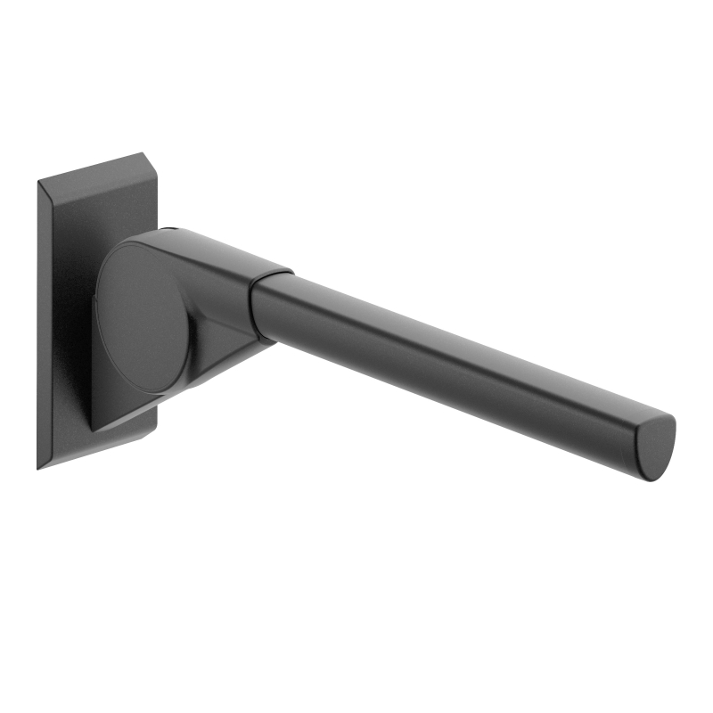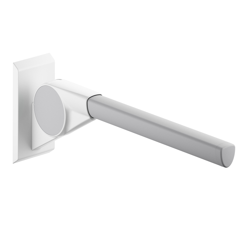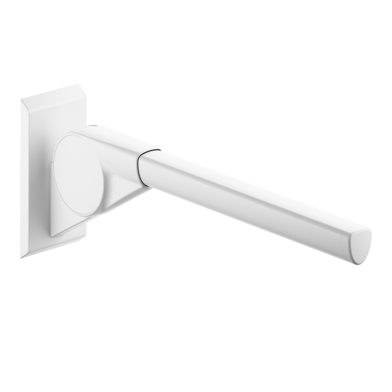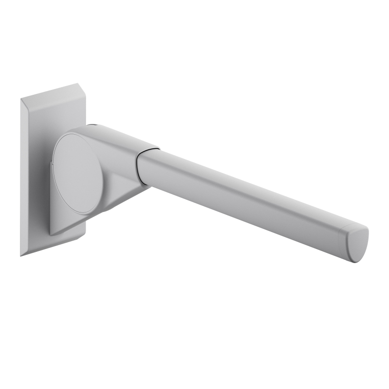 Durch die dopppel-elliptische / dreieckige Handgreifnorm in richtungsneutraler Ausführung sorgt er für optimales Greifen und Stützen. Die maximale Belastbarkeit von oben an der Vorderkante beträgt 100 kg und die seitliche Belasbarkeitsgrenze liegt bei 60 kg. Die verdeckte Befestigung des Stützklappgriff erfolgt mittels des, als Blende ausgeformten, griffseitigen Aufnahmeelements.