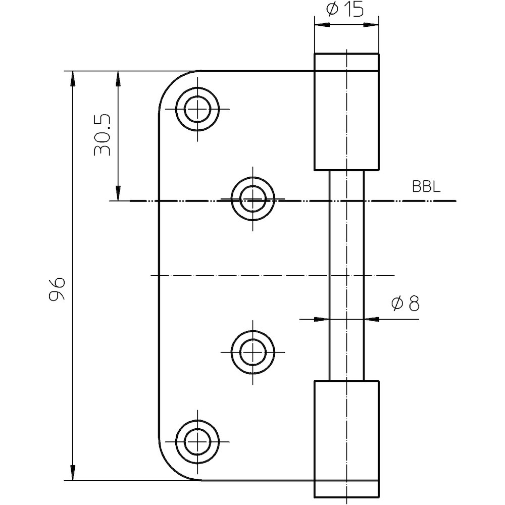 SIMONSWERK, Zimmertür-Flügelteil, Modell: VARIANT®, Modellnummer: V 0087 WF, Bandkonstruktion: 3-teilig, Kopfausbildung: Flachkopf, Material: Edelstahl, Farbton: edelstahl, Oberfläche: matt gebürstet, DIN-Richtung: DIN Links-Rechts, Rollendurchmesser: 15 mm, Lagerung: Gleitlager, wartungsfrei, Länge: 96 mm, Stiftdurchmesser: 8 mm, Anzahl Schraublöcher: 4 St., Ausführung: mit Lappen, Befestigungsart: zum Anschrauben, Feuerbeständigkeit: Klasse 1, Fräserdurchmesser: 20 mm, Funktionsbereich: Feuerschutz, Korrosionsbeständigkeit: Klasse 5, Materialstärke: 2,5 mm, Schraubendurchmesser: 4,5 mm, Schraubenlänge: 50 mm, Tragkraft pro Flügel (1 x 2 m) bei zwei Bändern: 70 kg, Türwerkstoff: Holz, Türausprägung: stumpfe Türen, Verstellbar: fest, kombinierbar mit: V 4400 WF 3 NUV, V 4200 WF, V 8000 WF U, V 8000 WF GA, V 8000/30 WF, V 8000/18 WF, V 8000 WF 4 NOV/NUV, V 8000 WF, V 4700 WF, V 4400 WF 4 NUV, V 4400 WF 4 NOV, V 4400 WF, V 8000 WF ASR, V 7900 WF VX-1, V 4700 WF FV