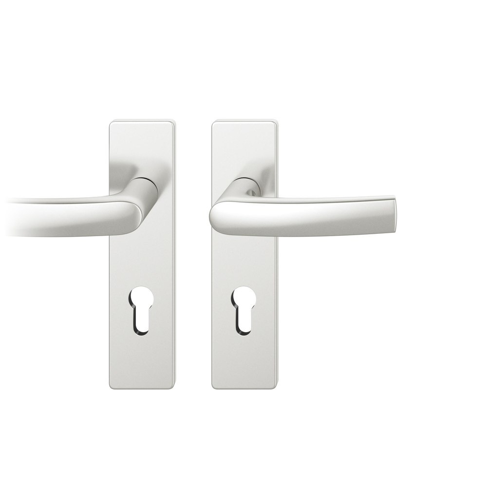 FSB Drückergarnitur 12 1015; Produkttyp: Drückergarnitur; Produkttyp (Hersteller): Drückergarnitur; Ausführung: Kurzschild; Befestigungsart: verdeckt verschraubt; Befestigungstechnik: mit Stütznocken; Form: eckig; Vierkant: 8 mm; Material: Aluminium; Material Unterkonstruktion: Kunststoff; Form Türgriff (innen): gebogen; Form Türgriff (außen): gebogen; Breite Türgriff (innen): 22 mm; Breite Türgriff (außen): 22 mm; Länge Türgriff (innen): 122 mm; Länge Türgriff (außen): 122 mm; Höhe Türgriff (innen): 55 mm; Höhe Türgriff (außen): 55 mm; Schildbreite außen: 45 mm; Schildbreite innen: 45 mm; Schildlänge außen: 185 mm; Schildlänge innen: 185 mm; Schildstärke außen: 7 mm; Schildstärke innen: 7 mm; Lagerung: festdrehbar, Adapter-Standardlager; Einsatzbereich: Zimmertür; Türart: Vollblatt; Türwerkstoff: Holz, Stahl; Norm: DIN EN 1906; Lochung: Profilzylinder gelocht; Entfernung: 72 mm; DIN-Richtung: DIN Links-Rechts; Farbe: silber; Farbton: naturfarben; Oberfläche: eloxiert; Ausführung Vierkant: Stabilstift; Betätigungswinkel max.: 45 °; Türstärke min.: 39 mm; Türstärke max.: 58 mm