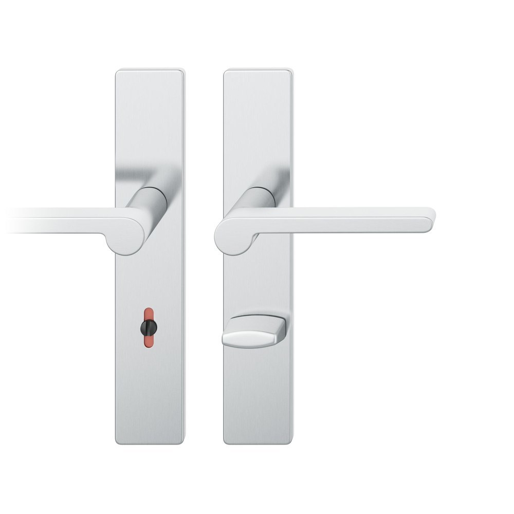FSB Drückergarnitur 12 1021, Langschild, eckig, WC Schauscheibe/Schlitzkopf, Entfernung 70mm, Vierkant 7mm, Riegel-Vierkant 6mm, DIN Links-Rechts, Türstärke 39 - 58mm, mit Stütznocken, edelstahl fein matt, Adapter-Standardlager