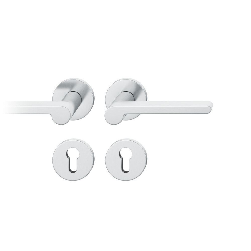 Produktinformationen "FSB Drückergarnitur 12 1021, Rosette, rund, Profilzylinder gelocht, Vierkant 8,5mm, DIN Links-Rechts, Türstärke 39 - 58mm, mit Stütznocken, edelstahl fein matt Adapter-Standardlager"
