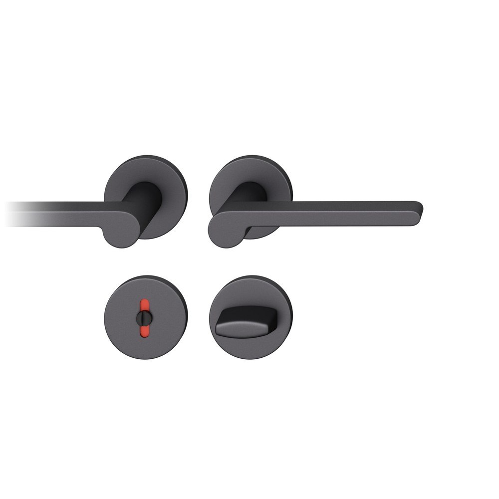 FSB Drückergarnitur 12 1021, Rosette, rund, WC Schauscheibe/Schlitzkopf, Vierkant 8,5mm, Riegel-Vierkant 7mm, DIN Links-Rechts, Türstärke 39 - 58mm, mit Stütznocken, schwarz gestrahlt Adapter-Standardlager