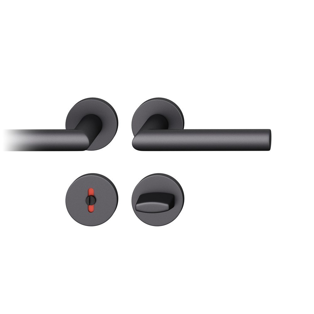 FSB Drückergarnitur 12 1076, Rosette, rund, WC Schauscheibe/Schlitzkopf, Vierkant 8mm, Riegel-Vierkant 8mm, DIN Links-Rechts, Türstärke 39 - 58mm, mit Stütznocken, schwarz gestrahlt Adapter-Standardlager