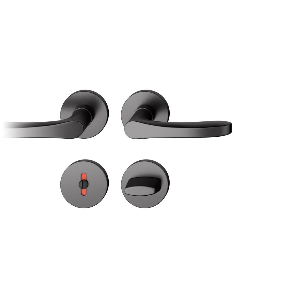 Produktinformationen "FSB Drückergarnitur 12 1106, Rosette, rund, WC Schauscheibe/Schlitzkopf, Vierkant 8mm, Riegel-Vierkant 8mm, DIN Links-Rechts, Türstärke 39 - 58mm, mit Stütznocken, tiefschwarz, ähnlich RAL 9005 farbig kunststoffbeschichtet Adapter-Standardlager"