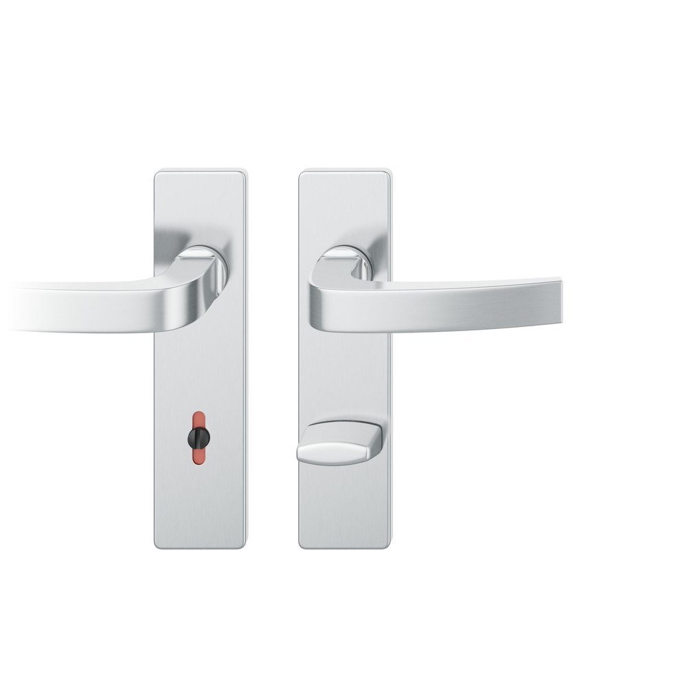 Produktinformationen "FSB Drückergarnitur 12 1163, Kurzschild, eckig, WC Schauscheibe/Schlitzkopf, Entfernung 78mm, Vierkant 8mm, Riegel-Vierkant 8mm, DIN Links-Rechts, Türstärke 39 - 58mm, mit Stütznocken, edelstahl fein matt, Adapter-Standardlager"