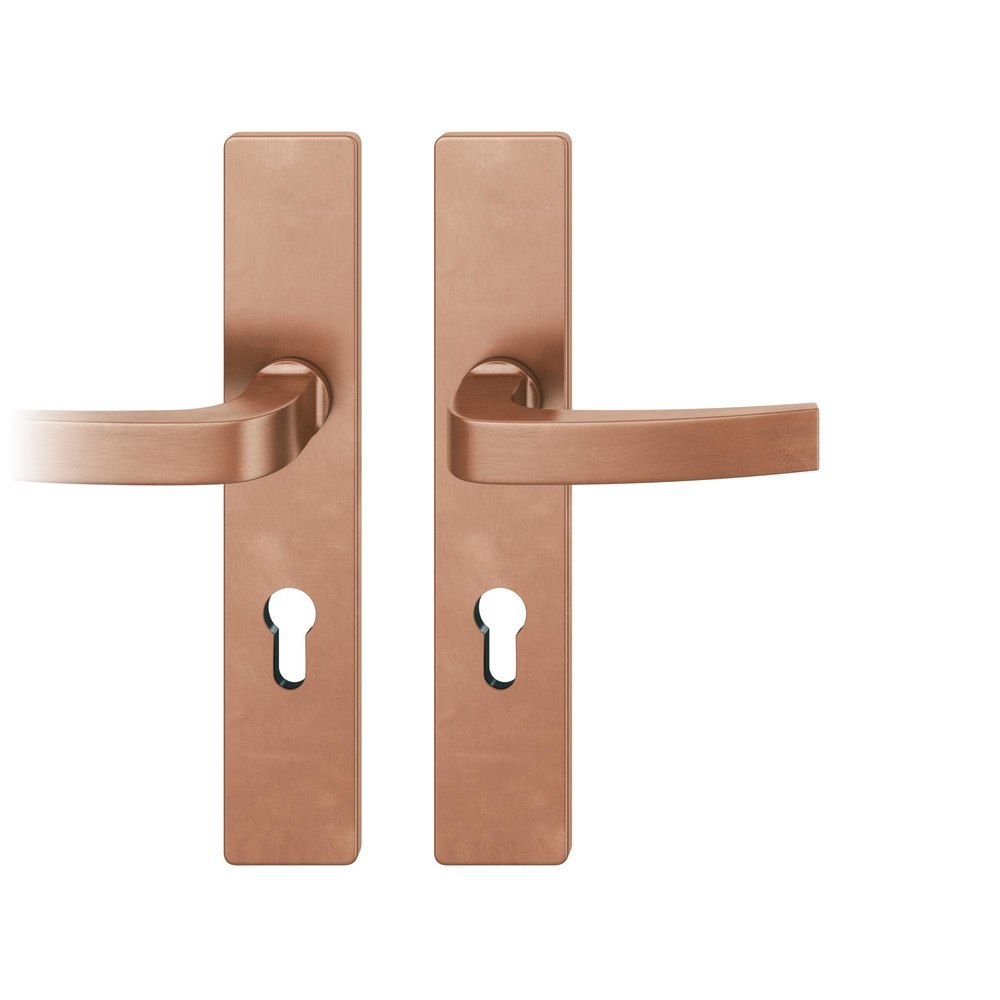 Produktinformationen "FSB Drückergarnitur 12 1163, Langschild, eckig, Profilzylinder gelocht, Entfernung 72mm, Vierkant 8mm, DIN Links-Rechts, Türstärke 39 - 58mm, mit Stütznocken, hellbronze patiniert gewachst, Adapter-Standardlager"