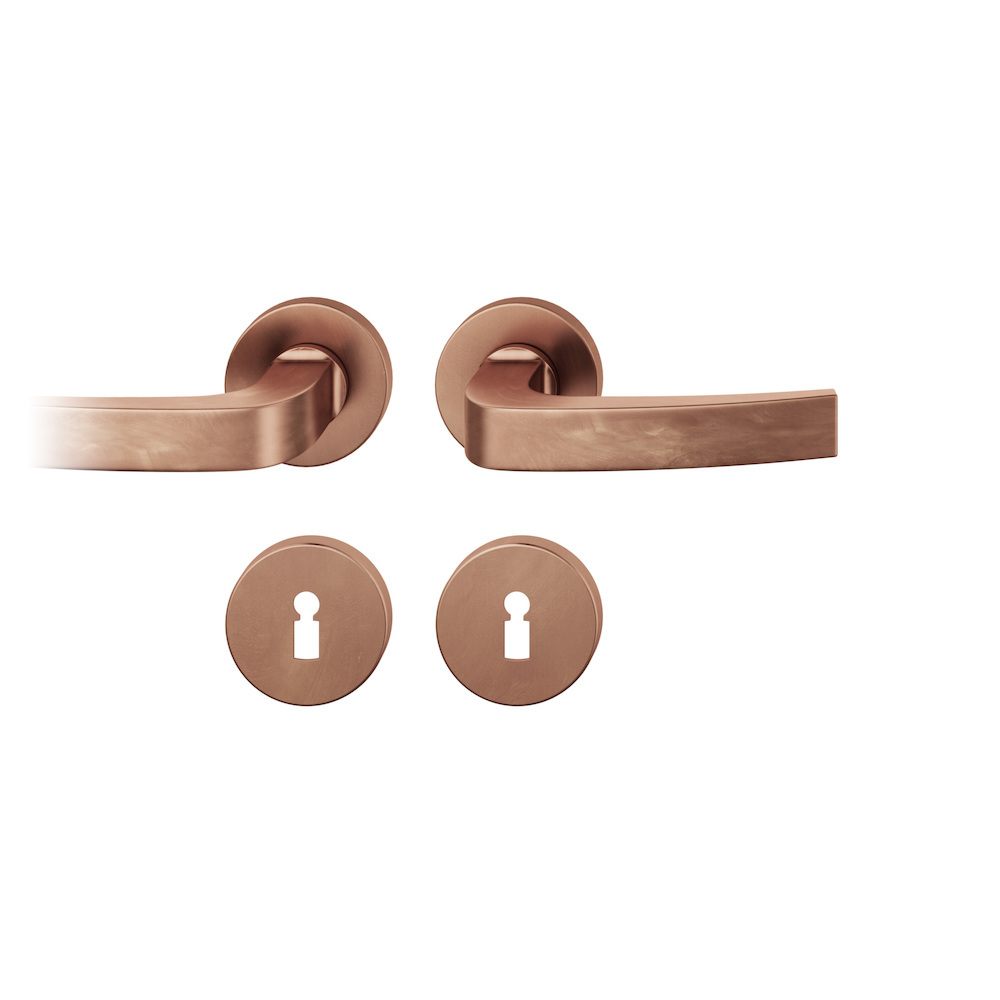 ASL Drückergarnitur 8.5mm BB Rundrosette max. 45°. TS 39-58mm Bronze hell patiniert gew.