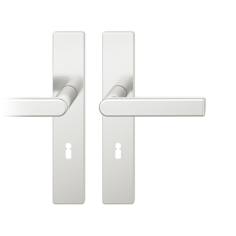 Produktinformationen "FSB Drückergarnitur 12 1244, Langschild, eckig, Buntbart gelocht, Vierkant 8mm, DIN Links-Rechts, Türstärke 39 - 58mm, mit Stütznocken, naturfarben eloxiert, Adapter-Standardlager"