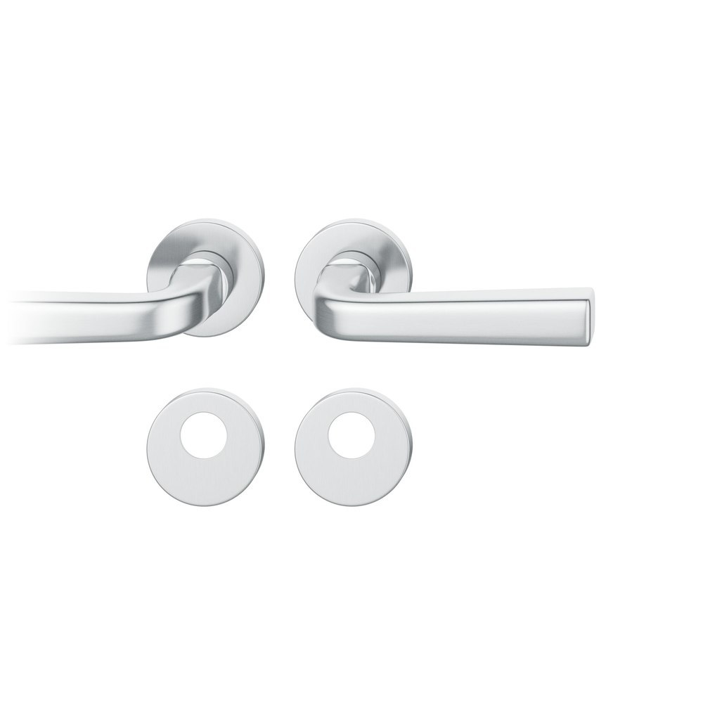 Produktinformationen "FSB Drückergarnitur 12 1254, Rosette, rund, Rundzylinder gelocht, Vierkant 8mm, DIN Links-Rechts, Türstärke 39 - 58mm, mit Stütznocken, edelstahl fein matt Adapter-Standardlager"
