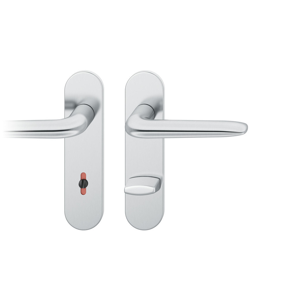 Produktinformationen "FSB Drückergarnitur 12 1292, Kurzschild oval, WC Schauscheibe/Schlitzkopf, Entfernung 78mm, Vierkant 8/8mm, DIN Links-Rechts, Türstärke 39 - 58mm, mit Stütznocken, edelstahl fein matt, Adapter-Standardlager"