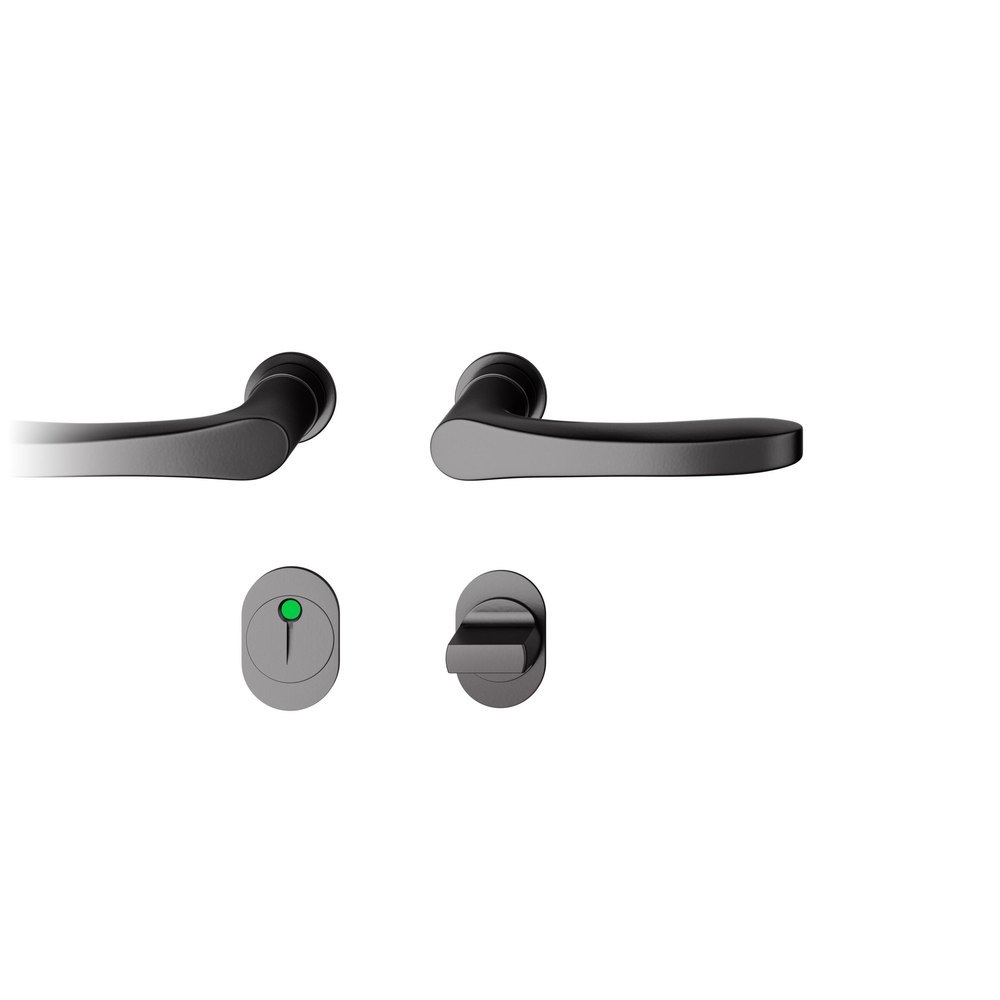 Produktinformationen "FSB Drückergarnitur 15 1106, Rosette, rund, WC Schauscheibe/Schlitzkopf, Vierkant 8mm, Riegel-Vierkant 8mm, DIN Links-Rechts, Türstärke 39 - 47mm, ohne Stütznocken, tiefschwarz, ähnlich RAL 9005 farbig kunststoffbeschichtet"