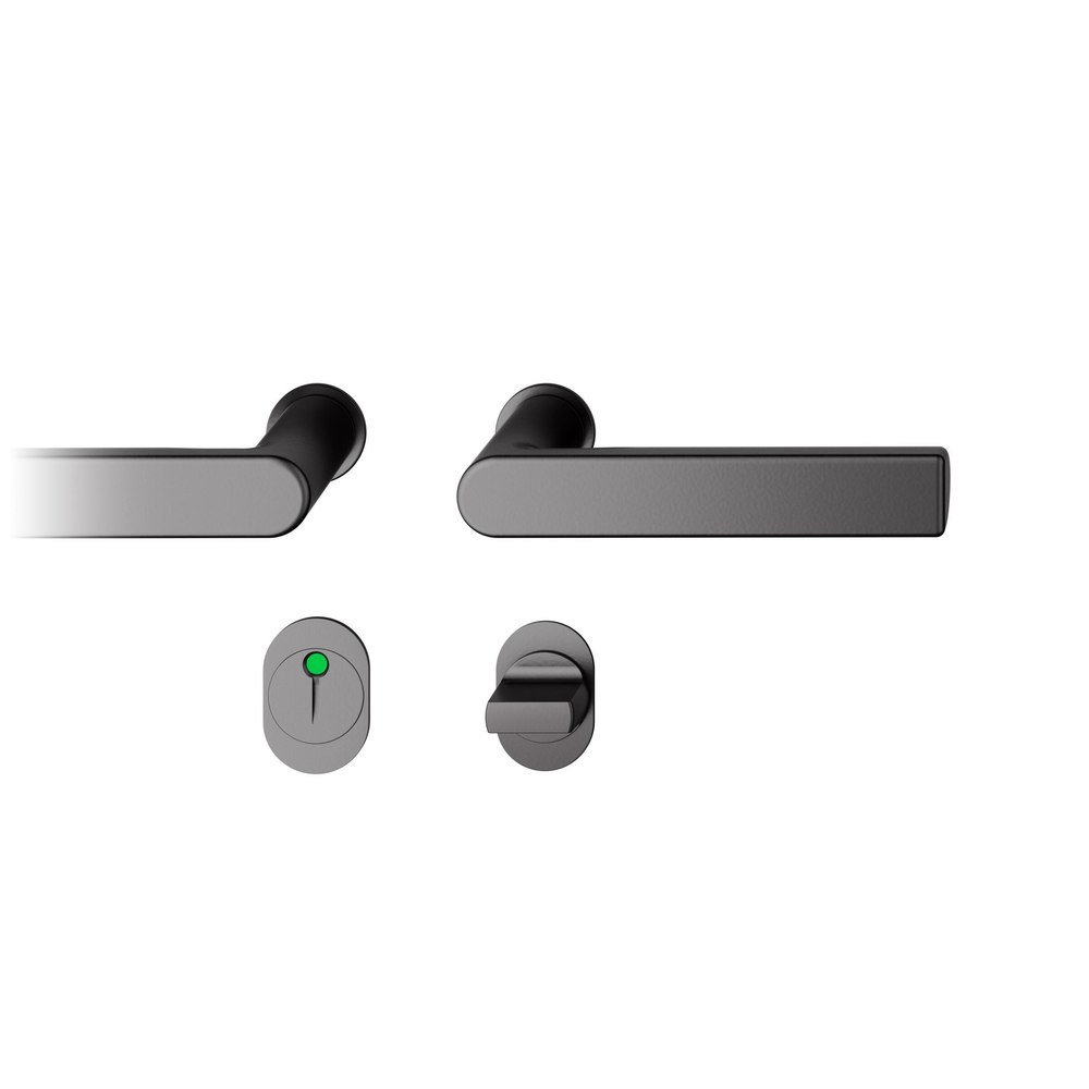 Produktinformationen "FSB Drückergarnitur 15 1244, Rosette, rund, WC Schauscheibe/Schlitzkopf, Vierkant 8mm, Riegel-Vierkant 8mm, DIN Links-Rechts, Türstärke 39 - 47mm, ohne Stütznocken, tiefschwarz, ähnlich RAL 9005 farbig kunststoffbeschichtet"