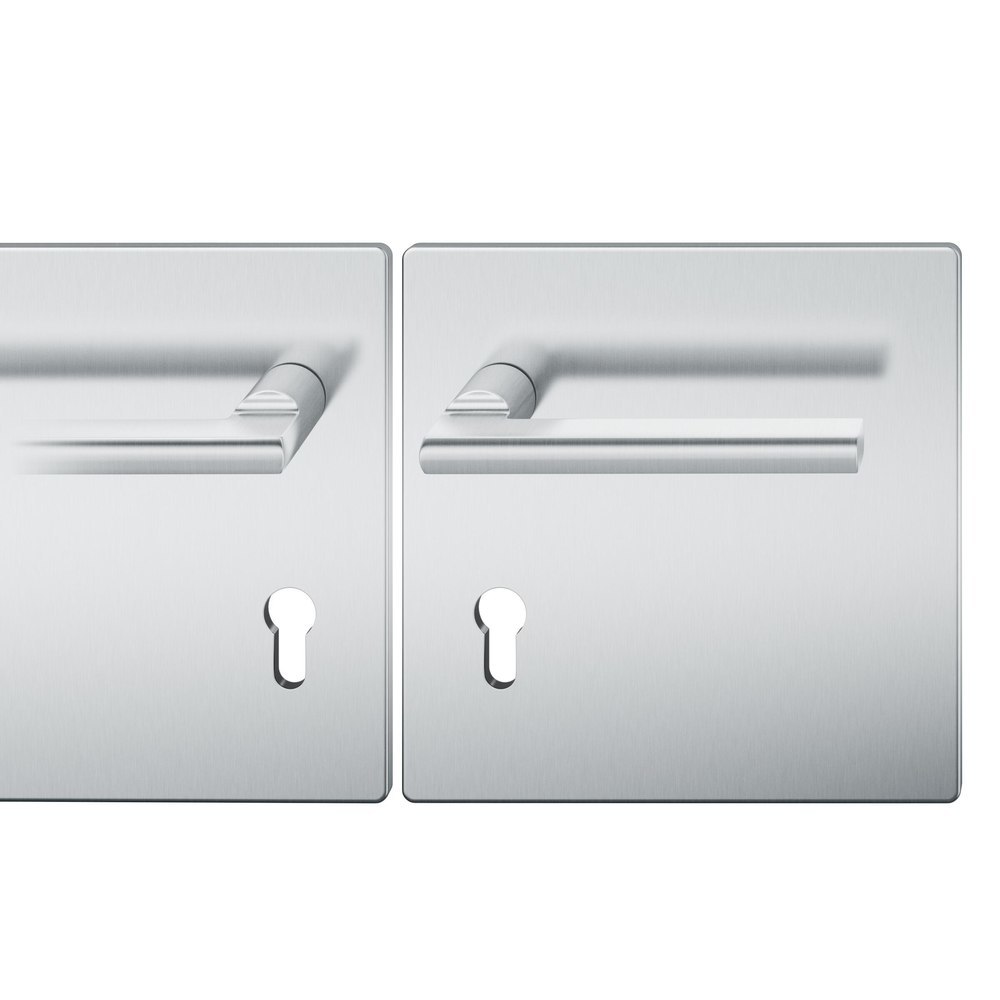 Produktinformationen "FSB Drückergarnitur 72 1035, Breitschild, eckig, Profilzylinder gelocht, Entfernung 72mm, Vierkant 8mm, DIN Rechts, Türstärke 39 - 48mm, Befestigungstechnik mit Stütznocken, grau, edelstahl, fein matt, AGL3"