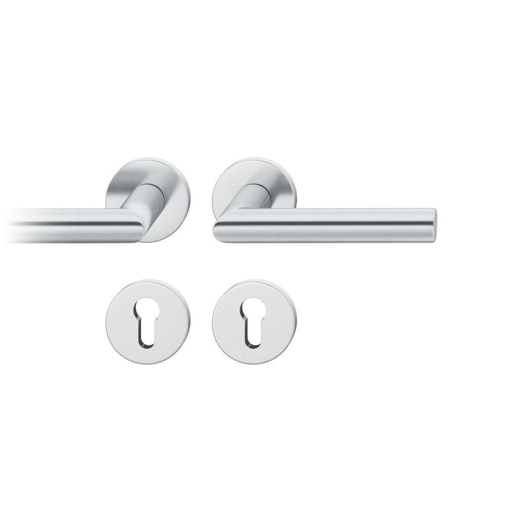 FSB Drückergarnitur 72 1076, Rosette, rund, Profilzylinder gelocht, Vierkant 8mm, DIN Links, Türstärke 39 - 48mm, mit Stütznocken, edelstahl fein matt Ausgleichslager® 3