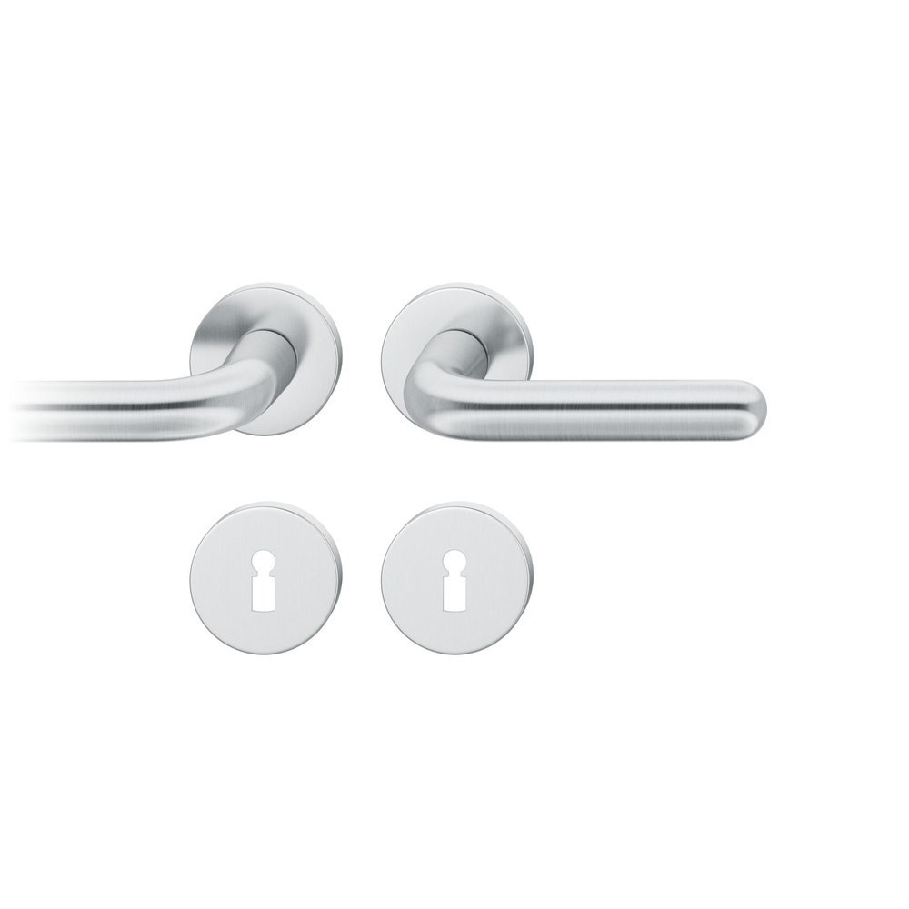 Produktinformationen "FSB Drückergarnitur 72 1147, Rosette, rund, Buntbart gelocht, Vierkant 8mm, DIN Rechts, Türstärke 39 - 48mm, mit Stütznocken, edelstahl fein matt Ausgleichslager® 3"