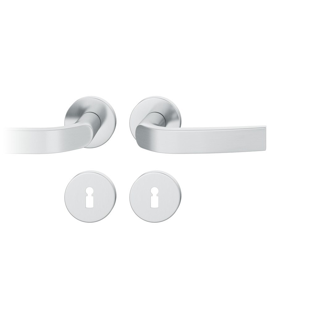 Produktinformationen "FSB Drückergarnitur 72 1271, Rosette, rund, Buntbart gelocht, Vierkant 8mm, DIN Links, Türstärke 39 - 48mm, mit Stütznocken, edelstahl fein matt Ausgleichslager® 3"