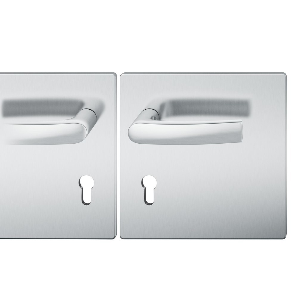 FSB Drückergarnitur 72 1015, Breitschild, eckig, Profilzylinder gelocht, Entfernung 72mm, Vierkant 8mm, DIN Links, Türstärke 39 - 48mm, Befestigungstechnik mit Stütznocken, grau, edelstahl, fein matt, AGL3