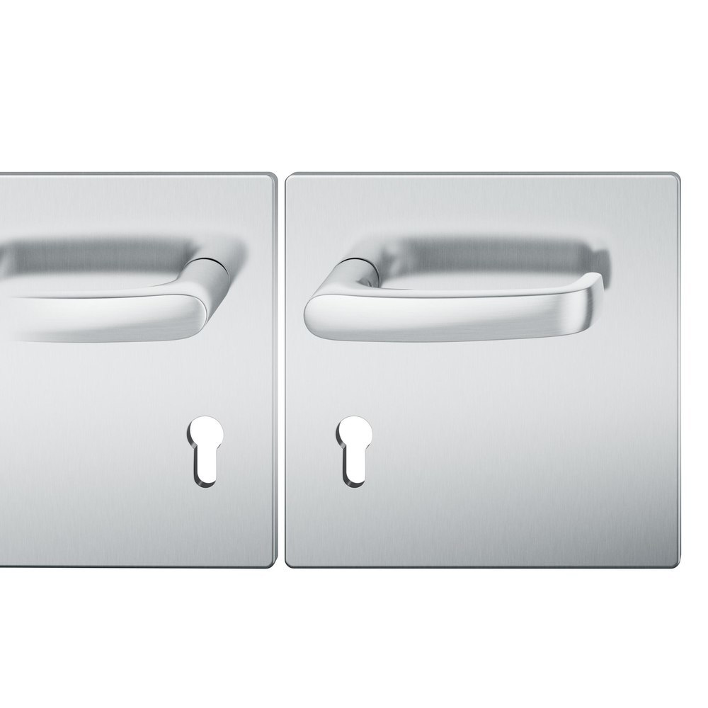 Produktinformationen "FSB Drückergarnitur 72 1045, Breitschild, eckig, Profilzylinder gelocht, Entfernung 72mm, Vierkant 8mm, DIN Rechts, Türstärke 39 - 48mm, Befestigungstechnik mit Stütznocken, grau, edelstahl, fein matt, AGL3"