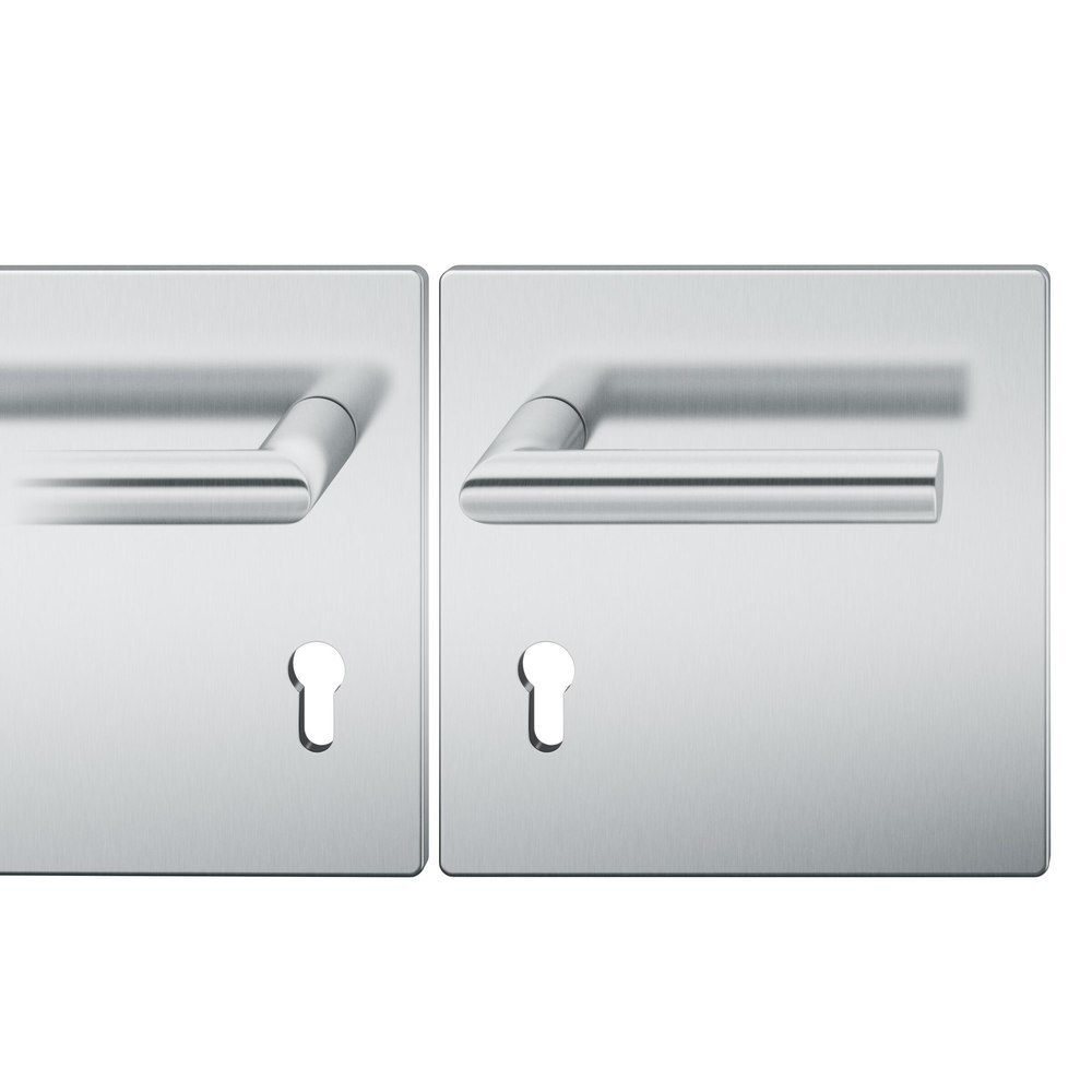 Produktinformationen "FSB Drückergarnitur 72 1076, Breitschild, eckig, Profilzylinder gelocht, Entfernung 72mm, Vierkant 8mm, DIN Links, Türstärke 39 - 48mm, Befestigungstechnik mit Stütznocken, grau, edelstahl, fein matt, AGL3"