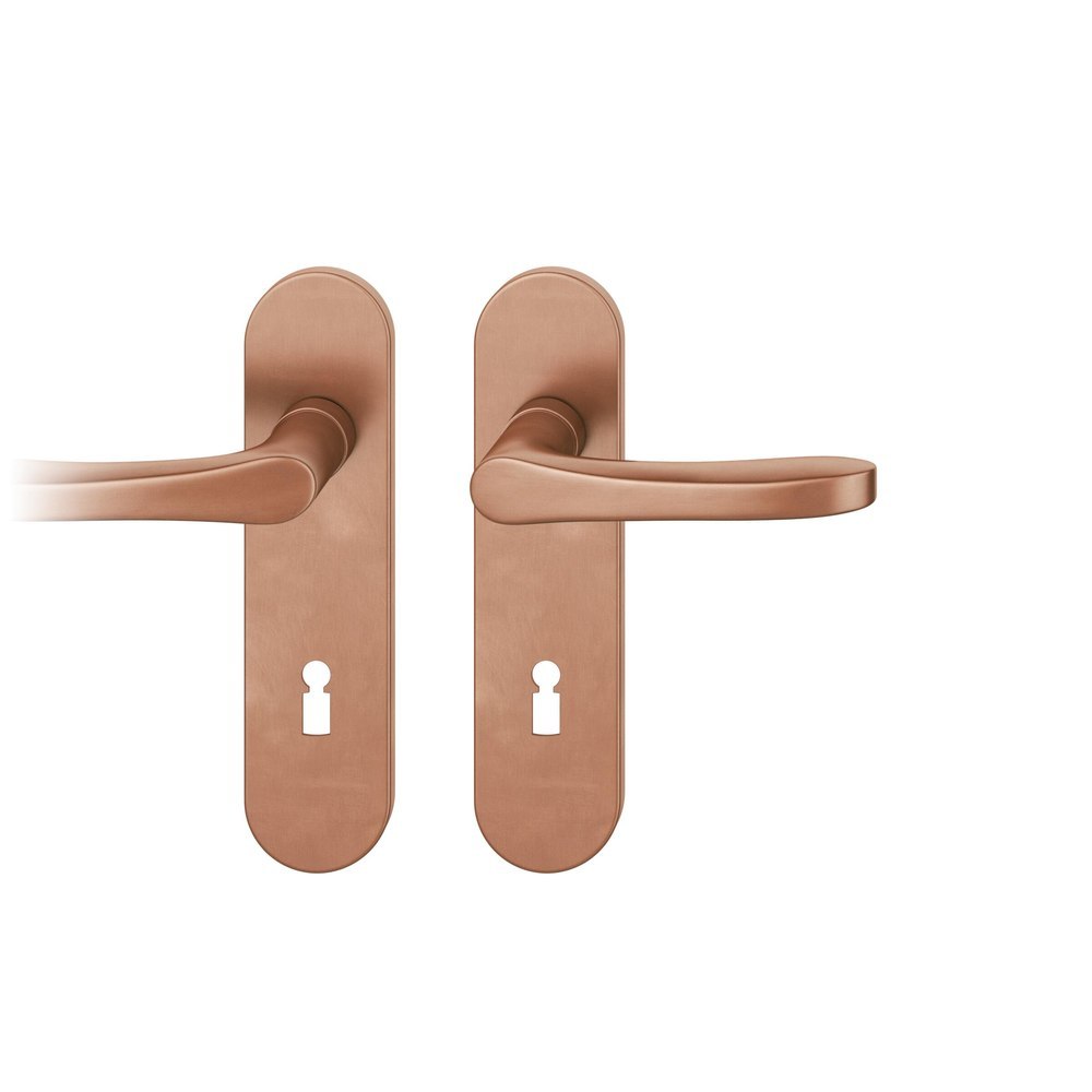Produktinformationen "FSB Drückergarnitur 12 1106, Kurzschild, oval, Buntbart gelocht, Entfernung 72mm, Vierkant 8mm, DIN Links-Rechts, Türstärke 39 - 58mm, mit Stütznocken, hellbronze patiniert gewachst, Adapter-Standardlager"