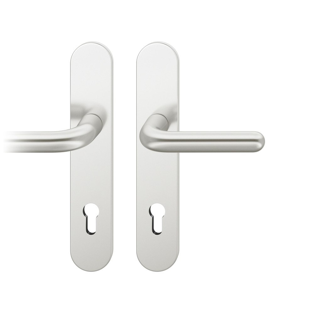 FSB Drückergarnitur 12 1147, Langschild, oval, Profilzylinder gelocht, Entfernung 92mm, Vierkant 8mm, DIN Links-Rechts, Türstärke 39 - 58mm, mit Stütznocken, naturfarben eloxiert, Adapter-Standardlager